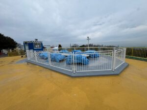 遊園地のアトラクションの周囲に格子柵を施工させていただきました