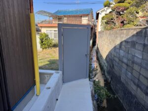 公園施設工事において隣地との隙間に侵入防止用の鉄扉を施工させていただきました